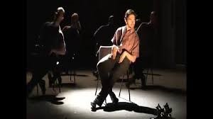 There use of repetition was also fascinating because every time the movement progressed someone else joined in on stage and it kept laying, every time someone joined in the movement stage it felt like a different meaning. When watching this scene in particular I wanted to use these the text and movement technique in my final performance. I liked the idea of having spoken texts and the movement having no link to what is being said. In our situation it worked out great as we had a divided set in the mirror and out the mirror. When speaking in full length you were out the mirror and the other people would do physical movement that had nothing to do with the narrator at the front. Watching this performance helped me develop new ideas of using the space with movement and text, which was something that as a group we were finding challenging.